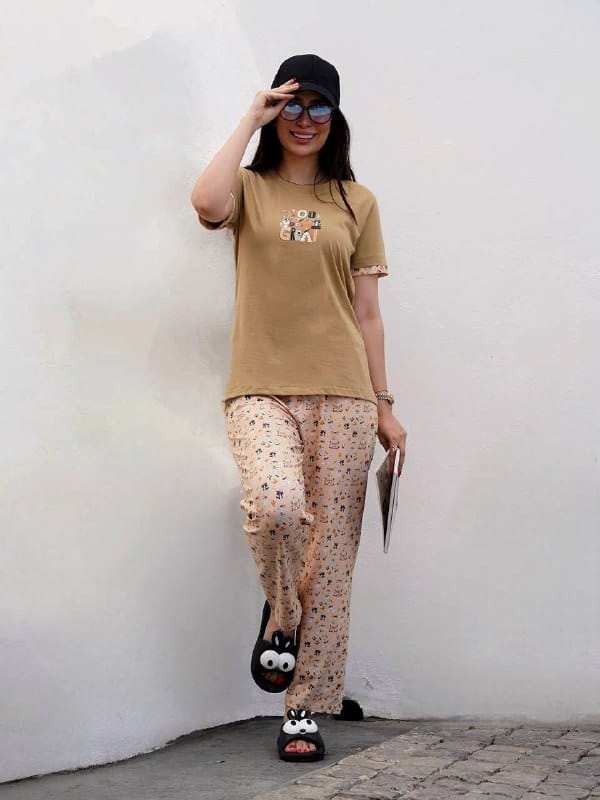 ست بلوز شلوار دورس پنبه هستی کد ۲۷۴۰
